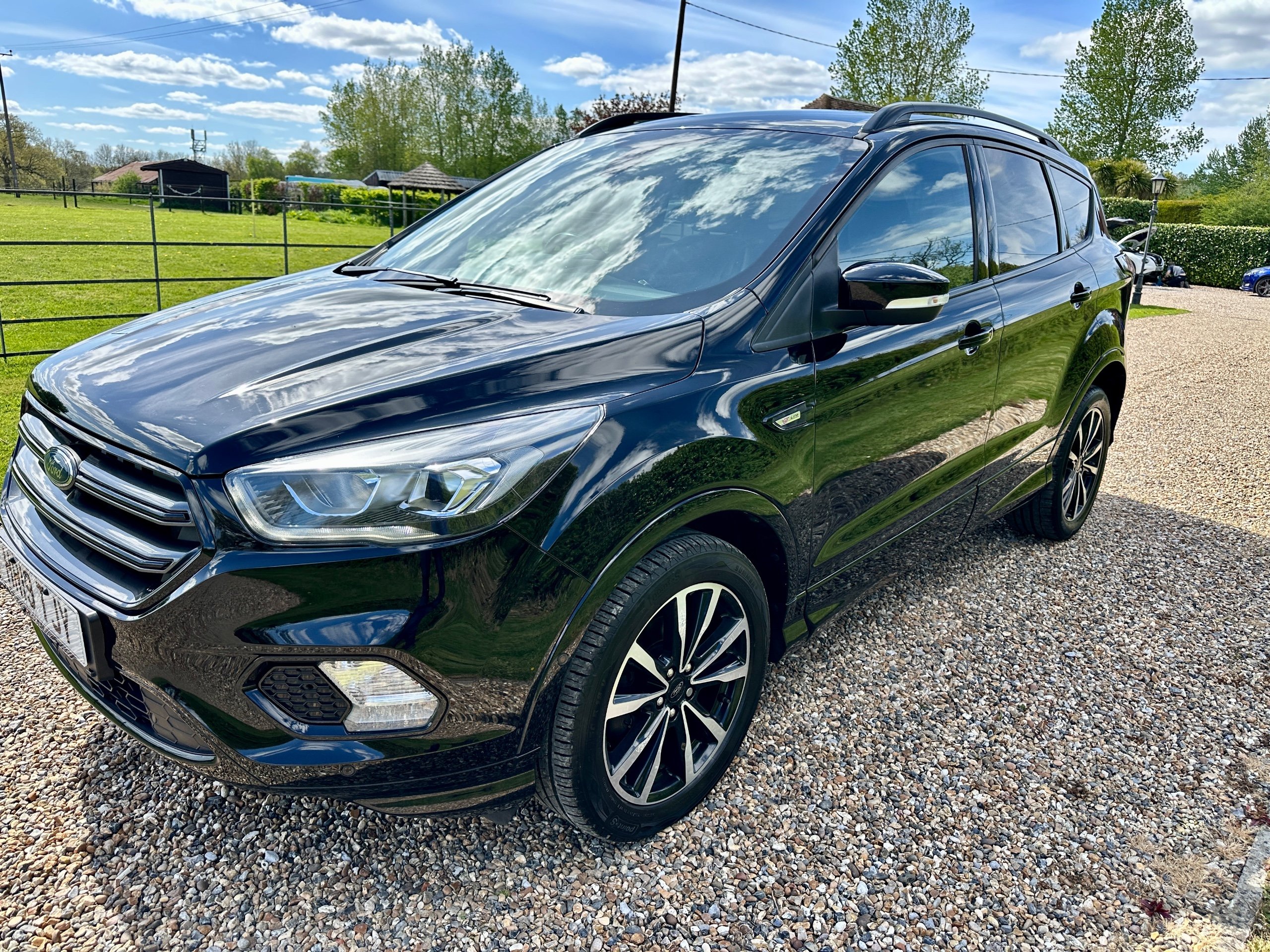 Here we have a fabulous example of the popular Ford Kuga ST-Line Automatic presented in Stunning Shadow Black Metallic with contrasting Grey Sports ST Line upholstery. Only 1 Private Owner from new this high specification car has been lovingly cared for throughout and looks absolutely fantastic in this colour combination.