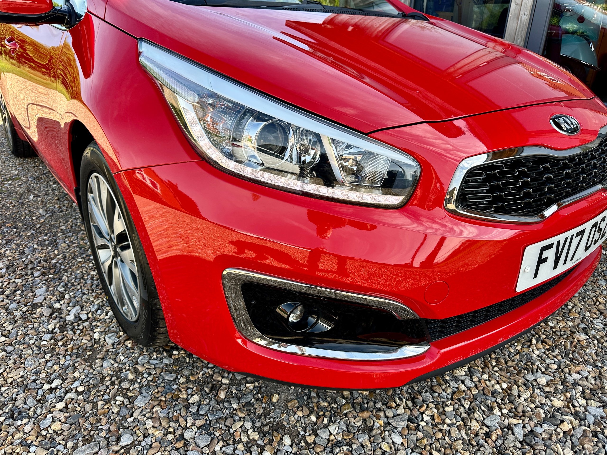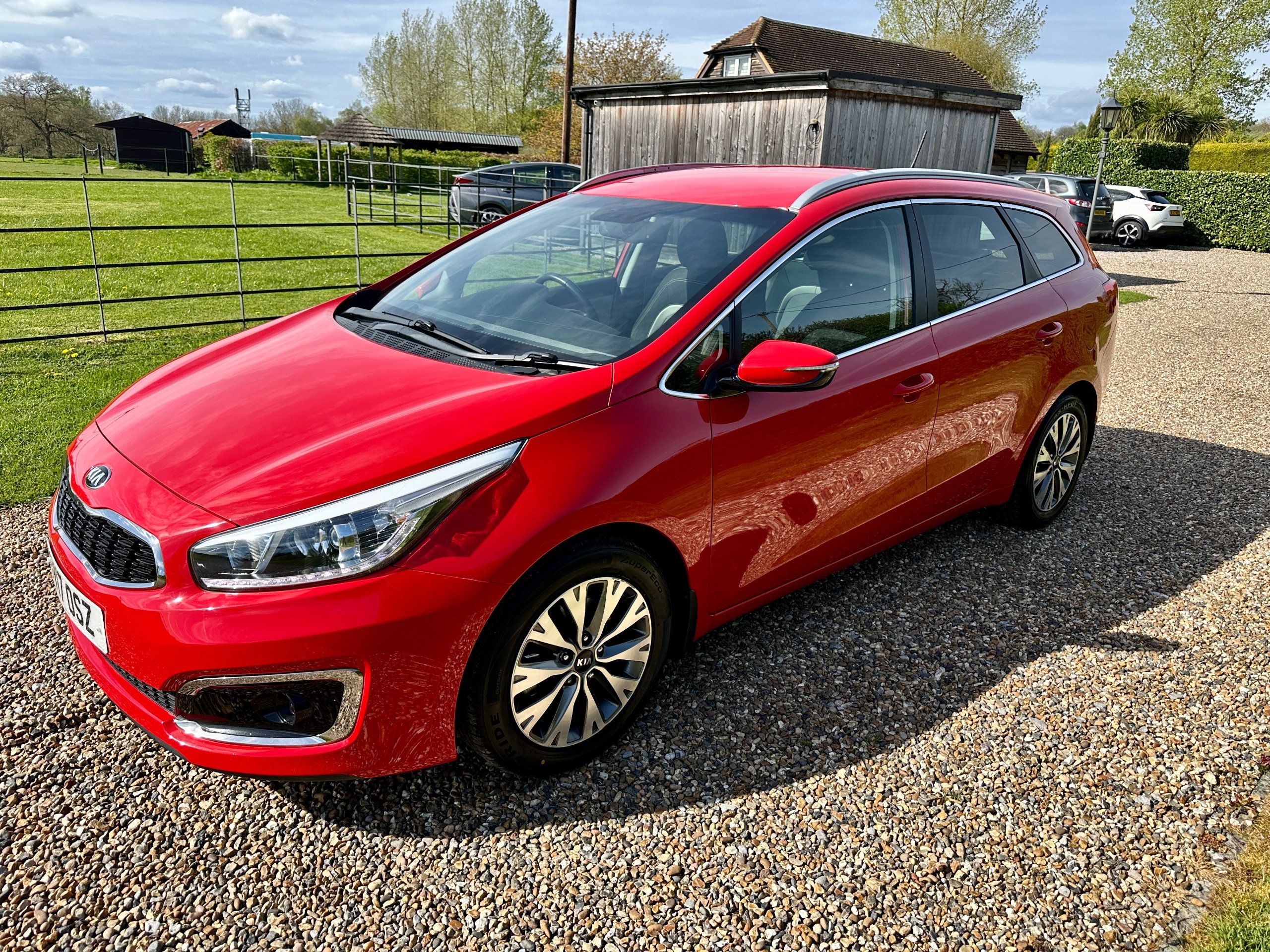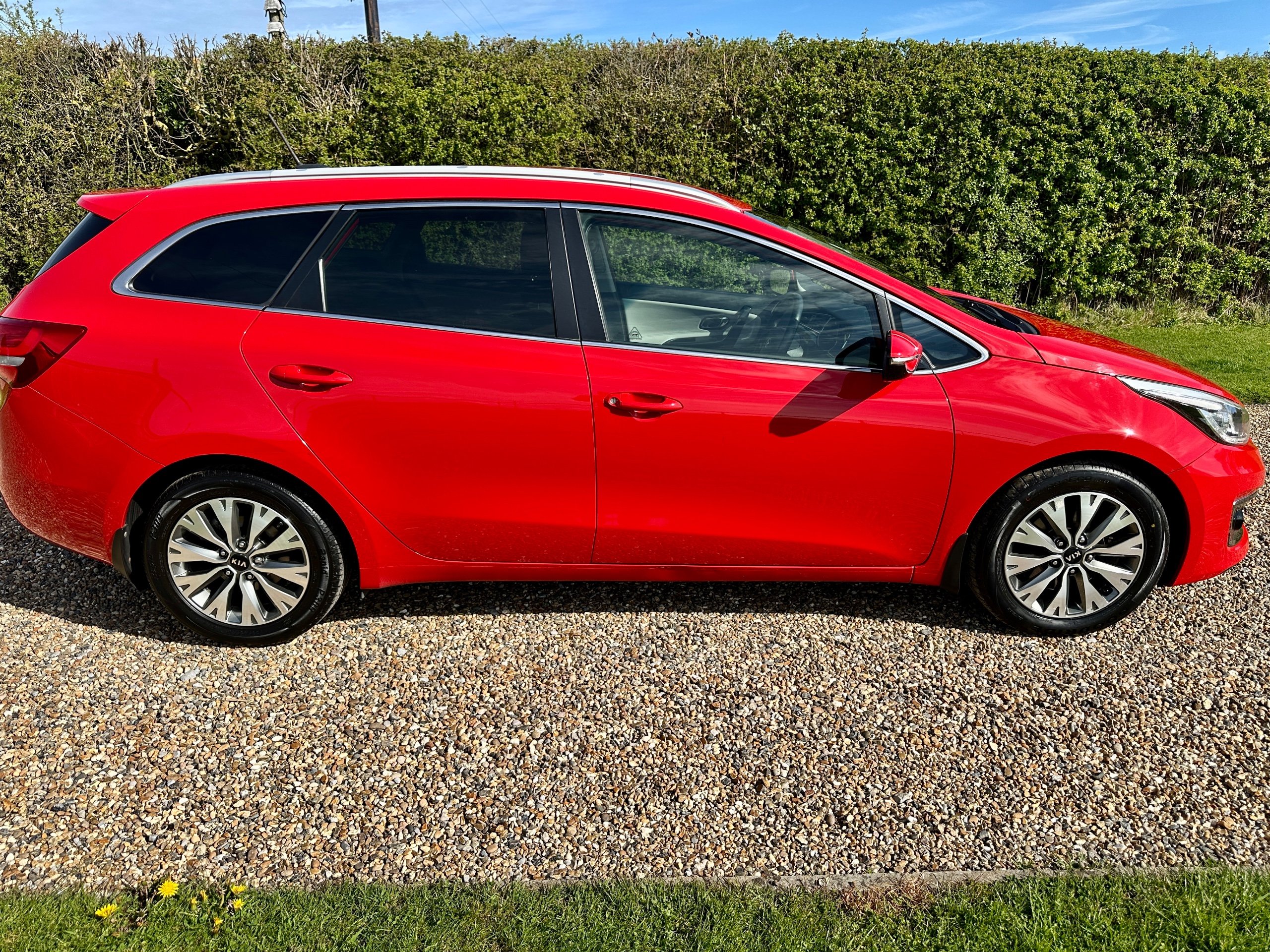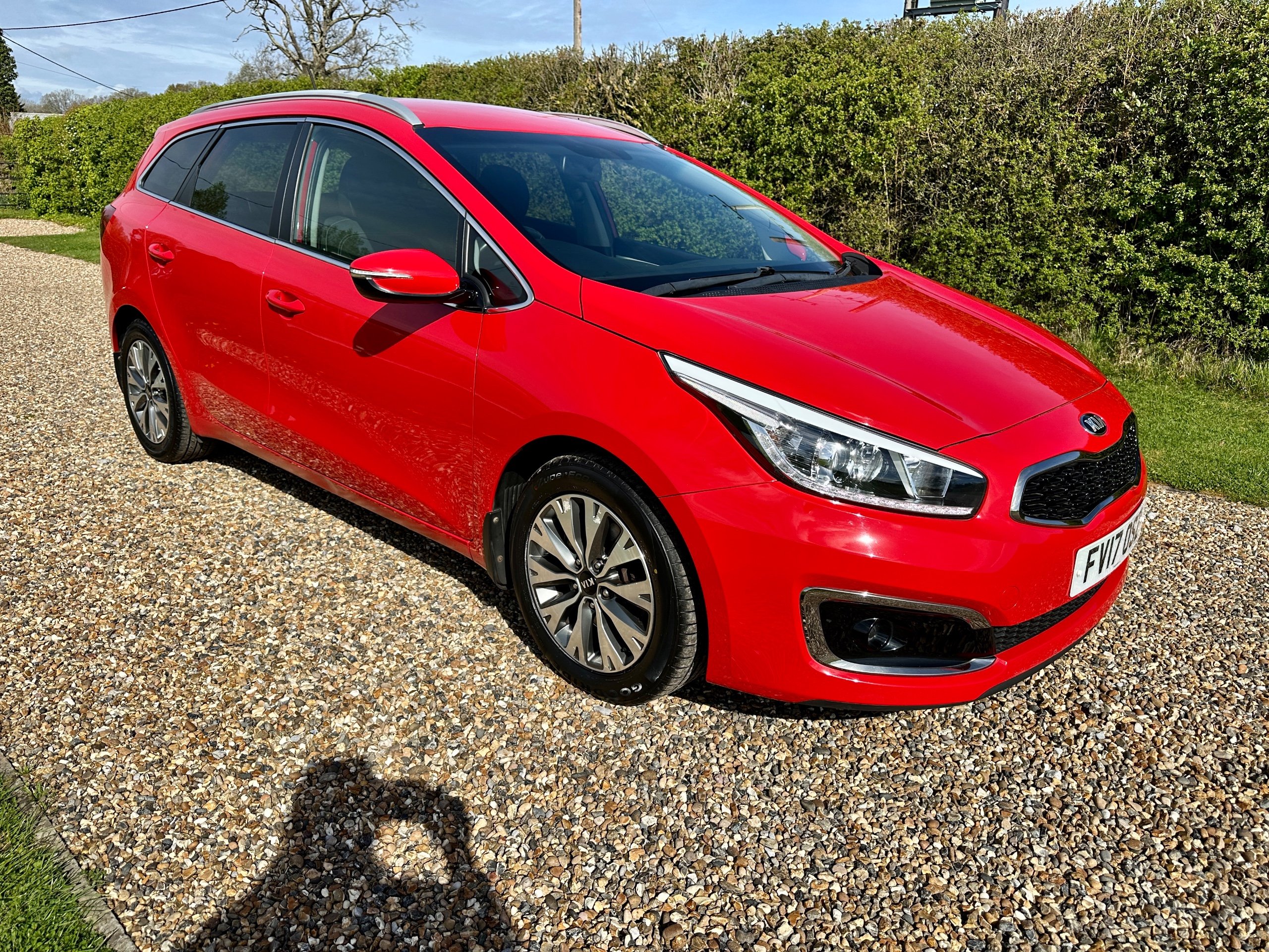 Here we have a fabulous low mileage example of the versatile Kia Ceed 3 Petrol Turbo Estate presented in stunning Mars Red with contrasting Grey cloth upholstery. The car has been lovingly cared for throughout and incredibly well maintained with full service history ( 8 Stamps recently done with 2x new tyres , plus new front brakes!!!) This spacious vehicle comes with 5 seats and 5 doors, making it ideal for family outings. The petrol engine provides a smooth and efficient drive, while the 7in touchscreen satellite navigation with European mapping and Bluetooth with music streaming ensure a comfortable and connected journey. HPI clear it comes with all books, both keys and a long MOT representing excellent value for money for such a clean example with great provenance.