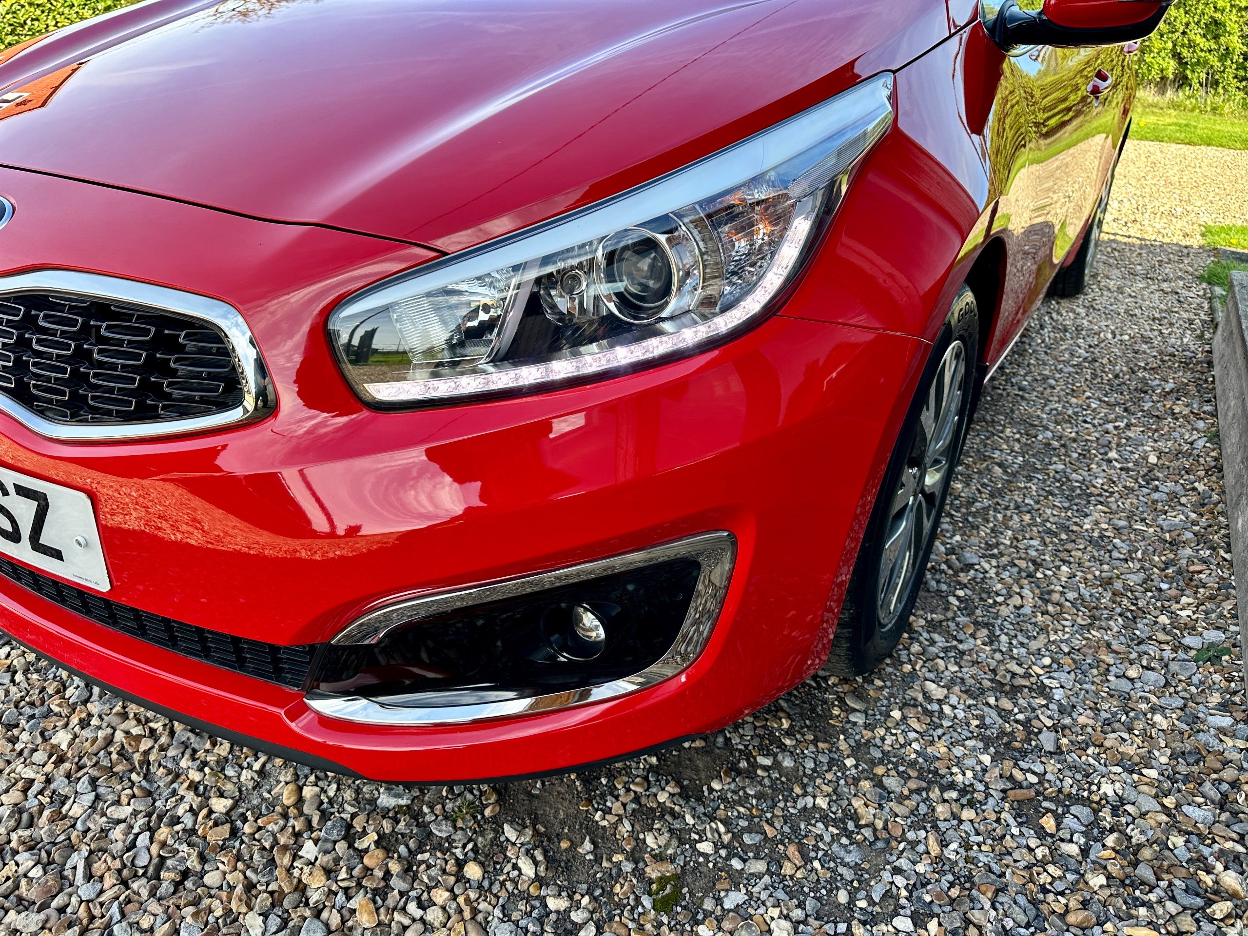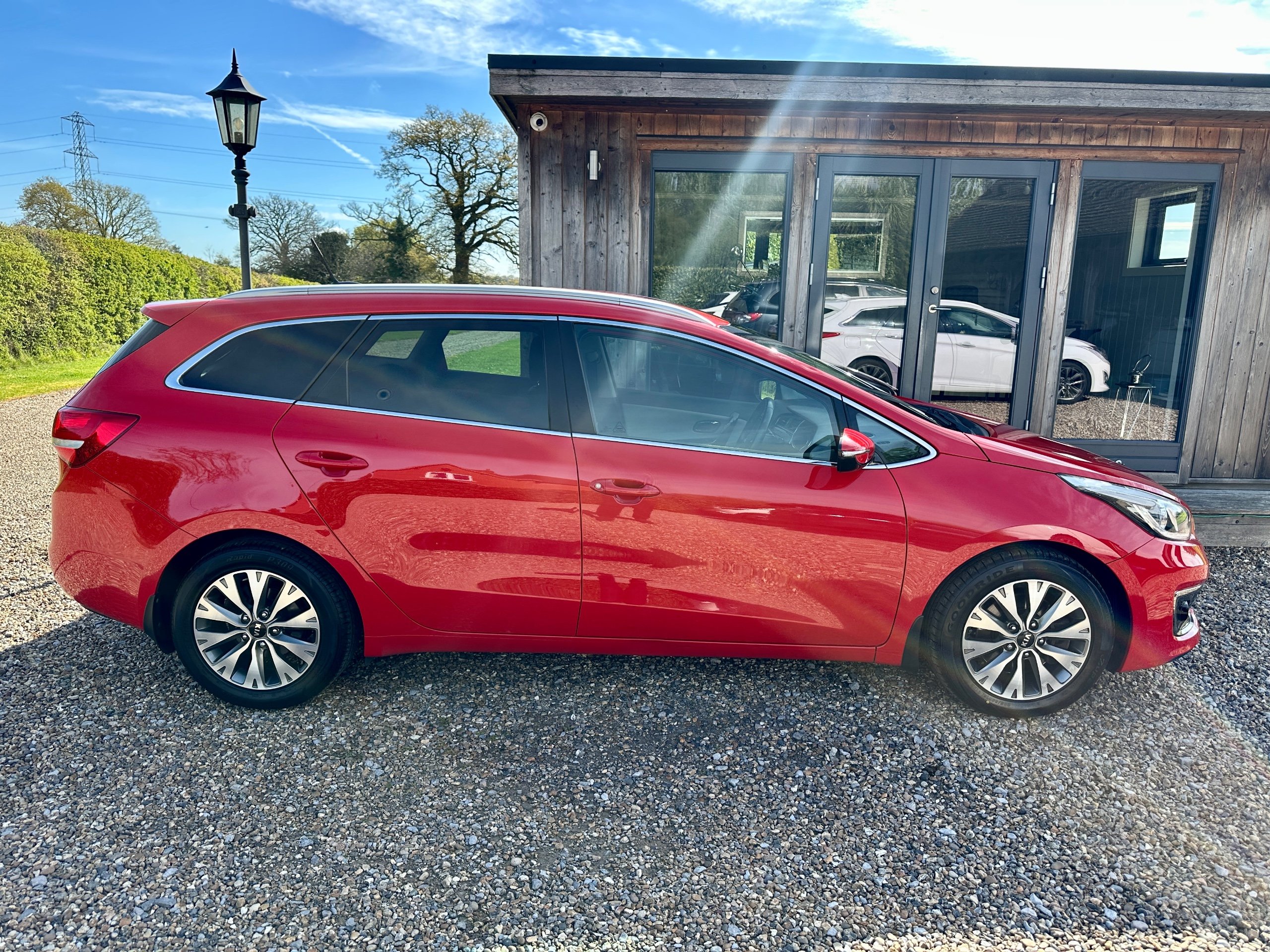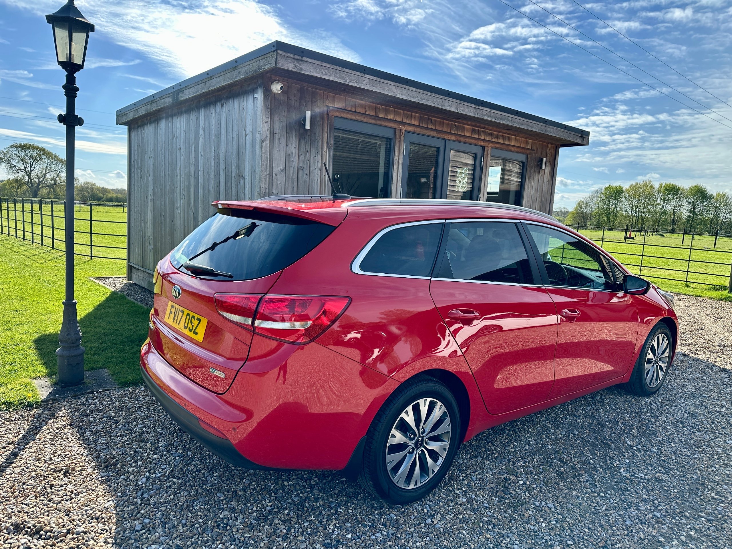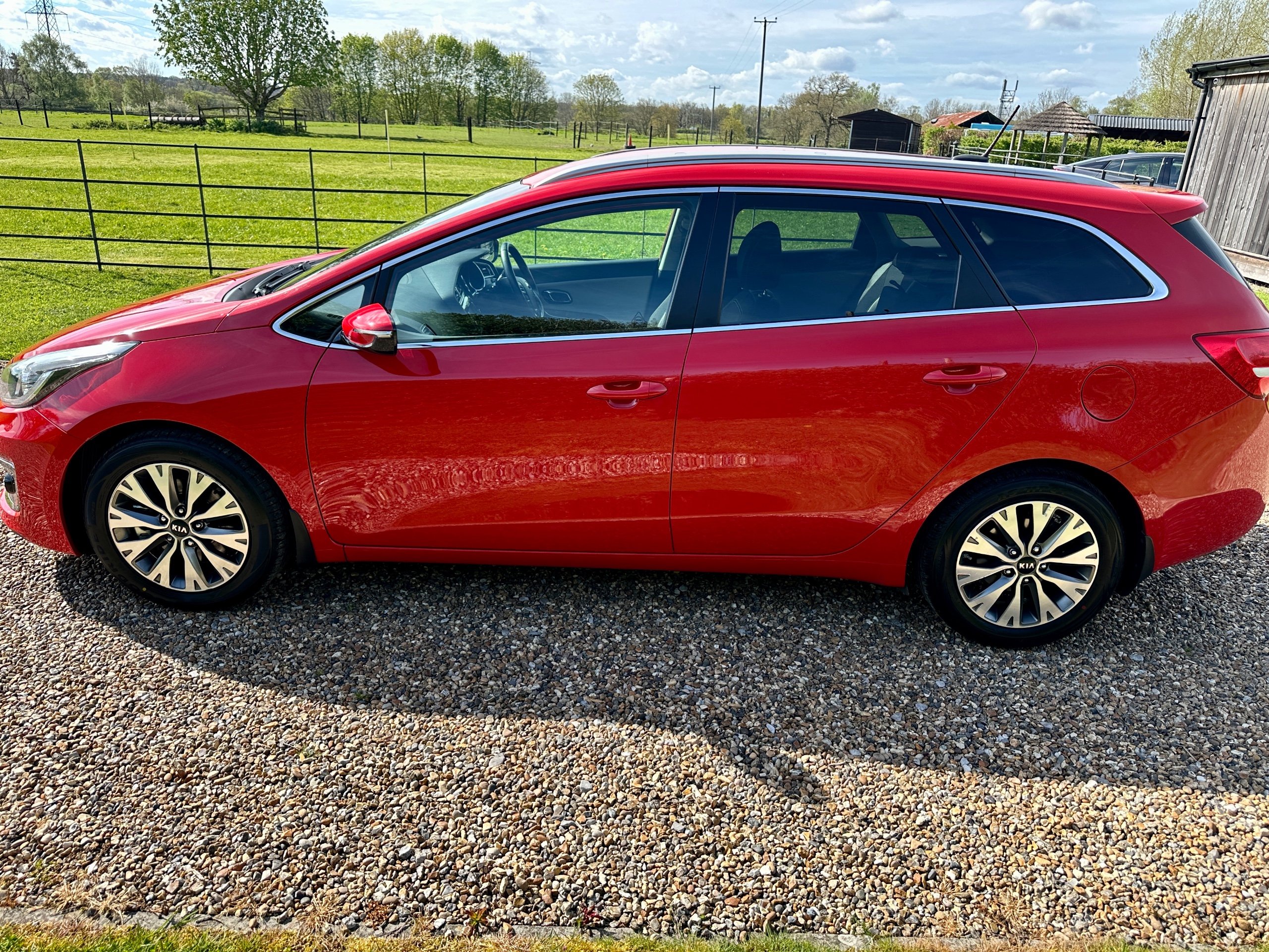 Here we have a fabulous low mileage example of the versatile Kia Ceed 3 Petrol Turbo Estate presented in stunning Mars Red with contrasting Grey cloth upholstery. The car has been lovingly cared for throughout and incredibly well maintained with full service history ( 8 Stamps recently done with 2x new tyres , plus new front brakes!!!) This spacious vehicle comes with 5 seats and 5 doors, making it ideal for family outings. The petrol engine provides a smooth and efficient drive, while the 7in touchscreen satellite navigation with European mapping and Bluetooth with music streaming ensure a comfortable and connected journey. HPI clear it comes with all books, both keys and a long MOT representing excellent value for money for such a clean example with great provenance.