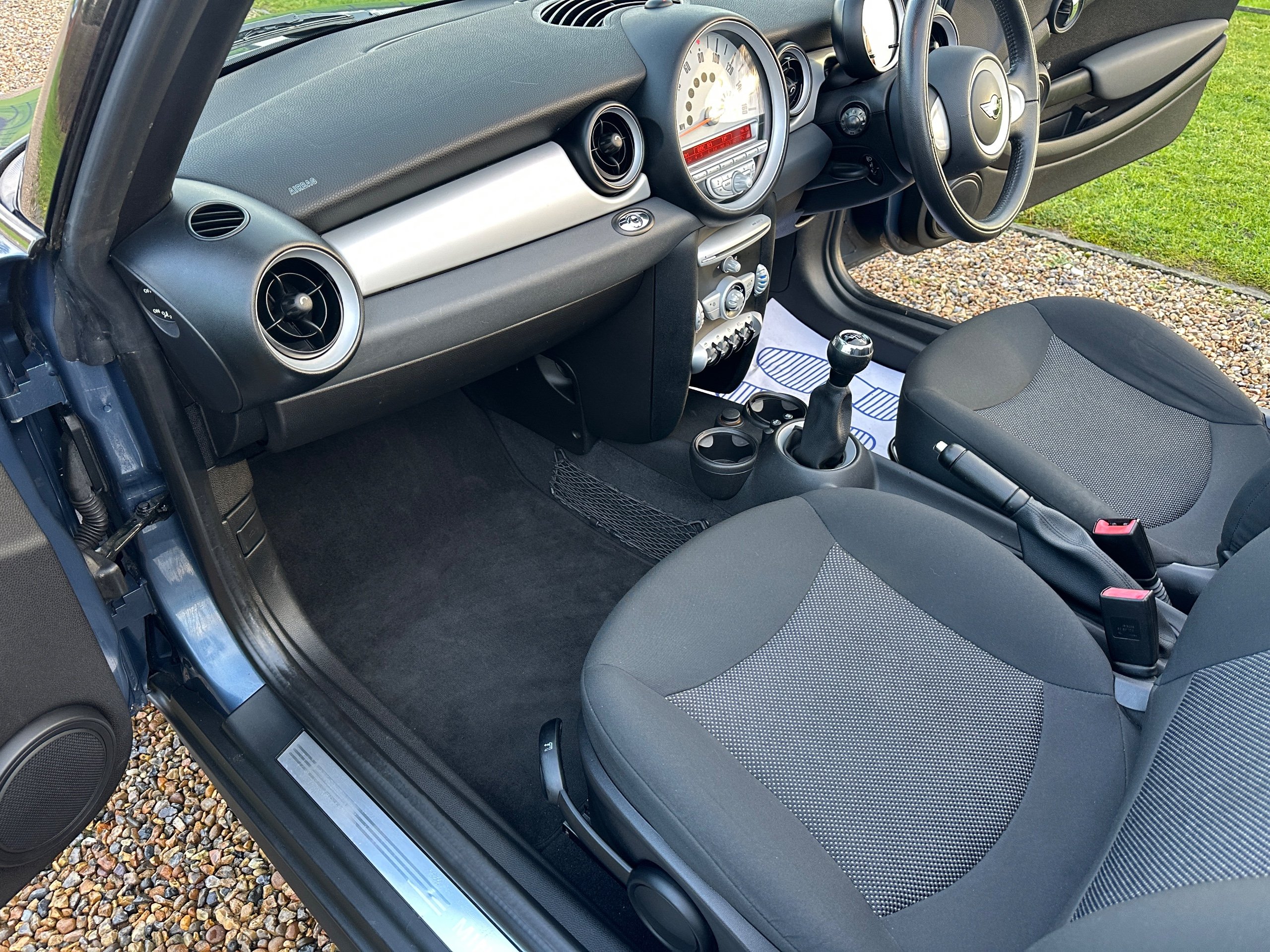 He we have a fabulous low mileage example of the stunning Mini Cooper 1.6 Petrol Convertible presented in fantastic Lightning Blue Metallic with contrasting Grey cloth upholstery. Only 1 private owner from new this local car has been lovingly cared for throughout and comes with many optional extras including air conditioning, rear parking sensors and the denim electric roof. HPI clear it comes with main dealer Service history ( 10 Stamps !!! ) , a long mot , all books and both keys representing excellent value for money for such a rare clean example with great provenance.